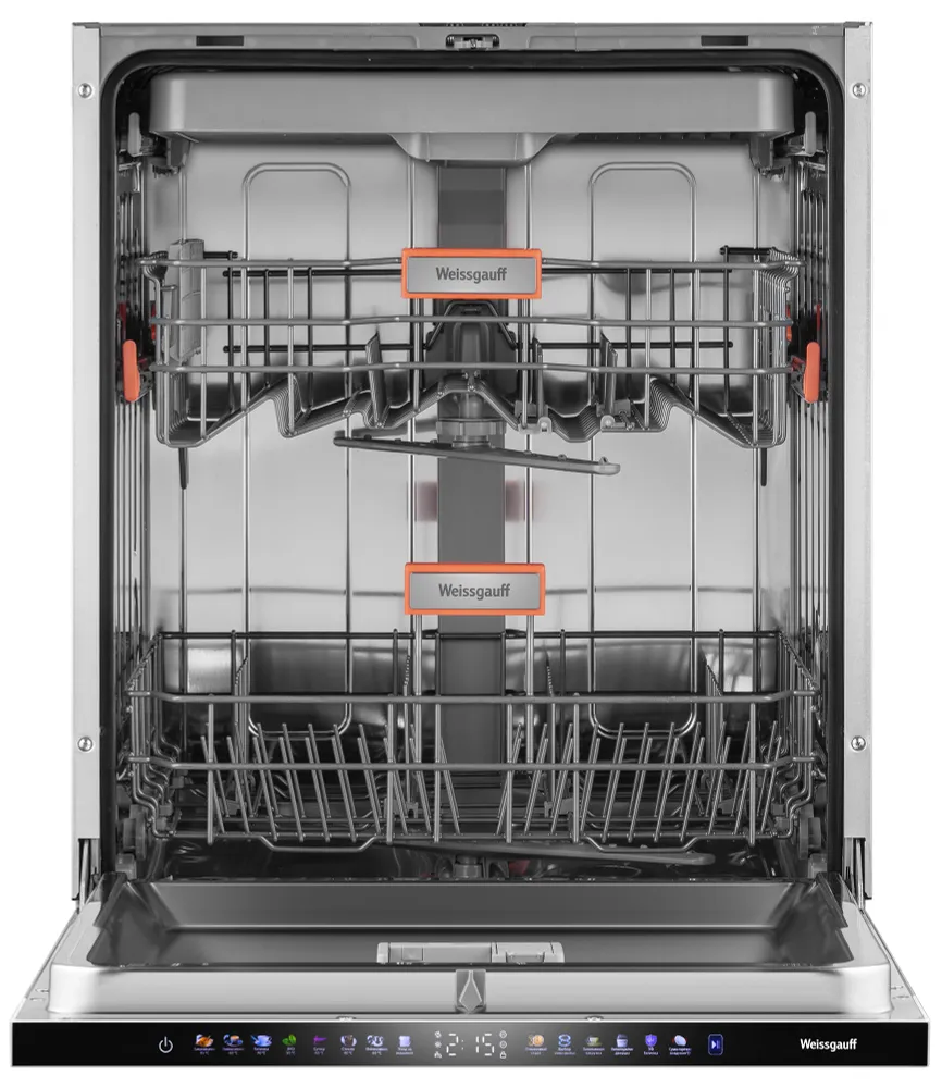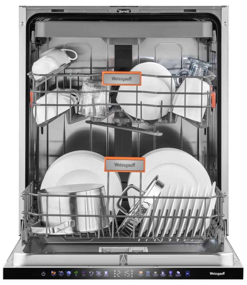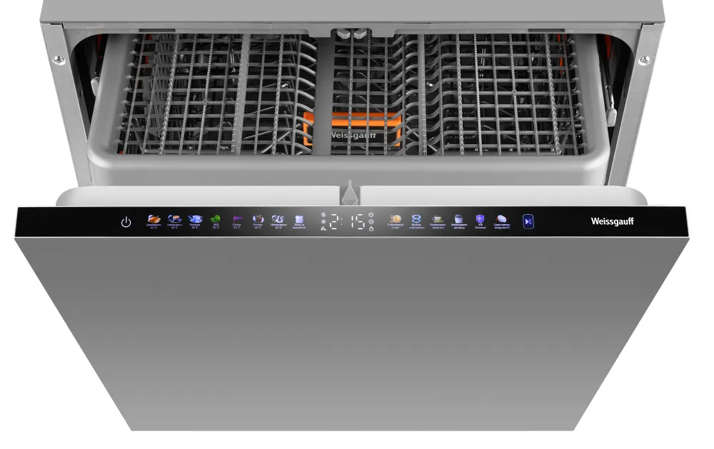 Программы : Замачивание 45 °C, Универсальная 60 °C, Гигиена 70 °C, ЭКО 50 °C, Супер 60 °C, Стекло 40 °C, Интенсивная 65 °C, Уход за машиной