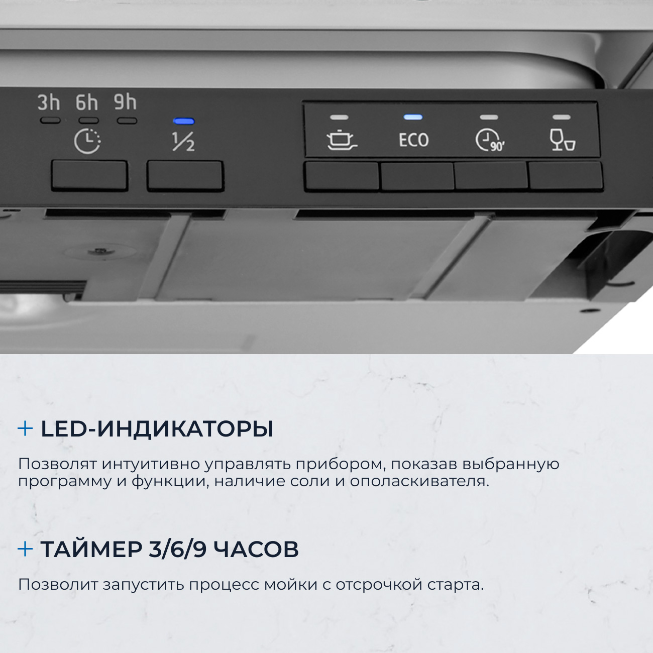 LED-индикаторы наличия соли и ополаскивателя