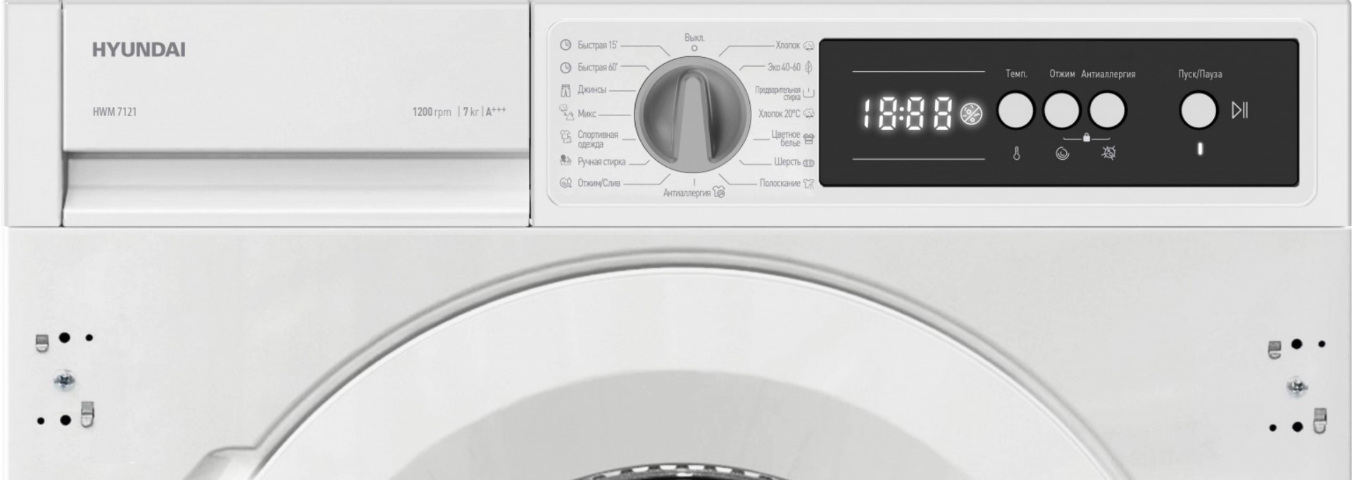 Программы Хлопок, Эко 40-60, Предварительная стирка, Хлопок 20°C, Цветное белье, Шерсть, Полоскание, Антиаллергия, Отжим/Слив, Ручная стирка, Спортивная одежда, Микс, Джинсы, Быстрая 60’, Быстрая 15’