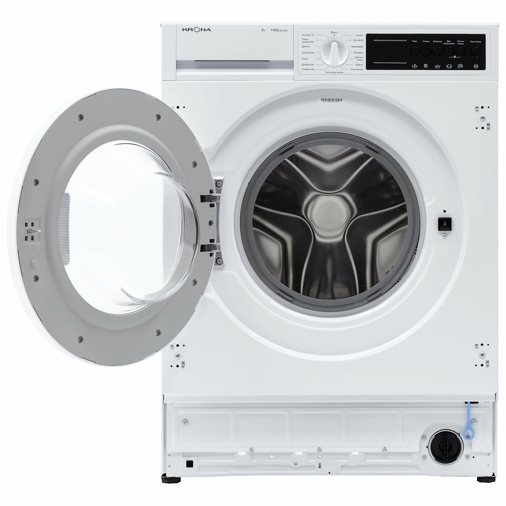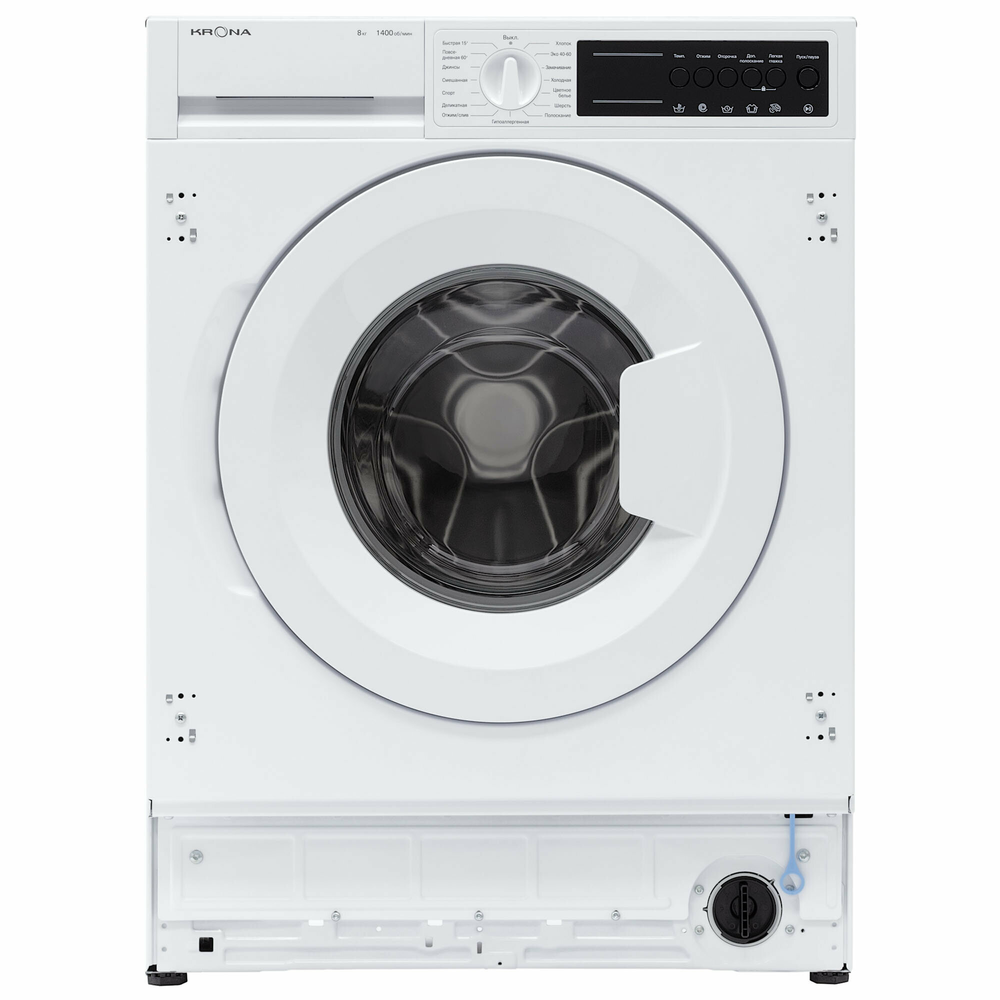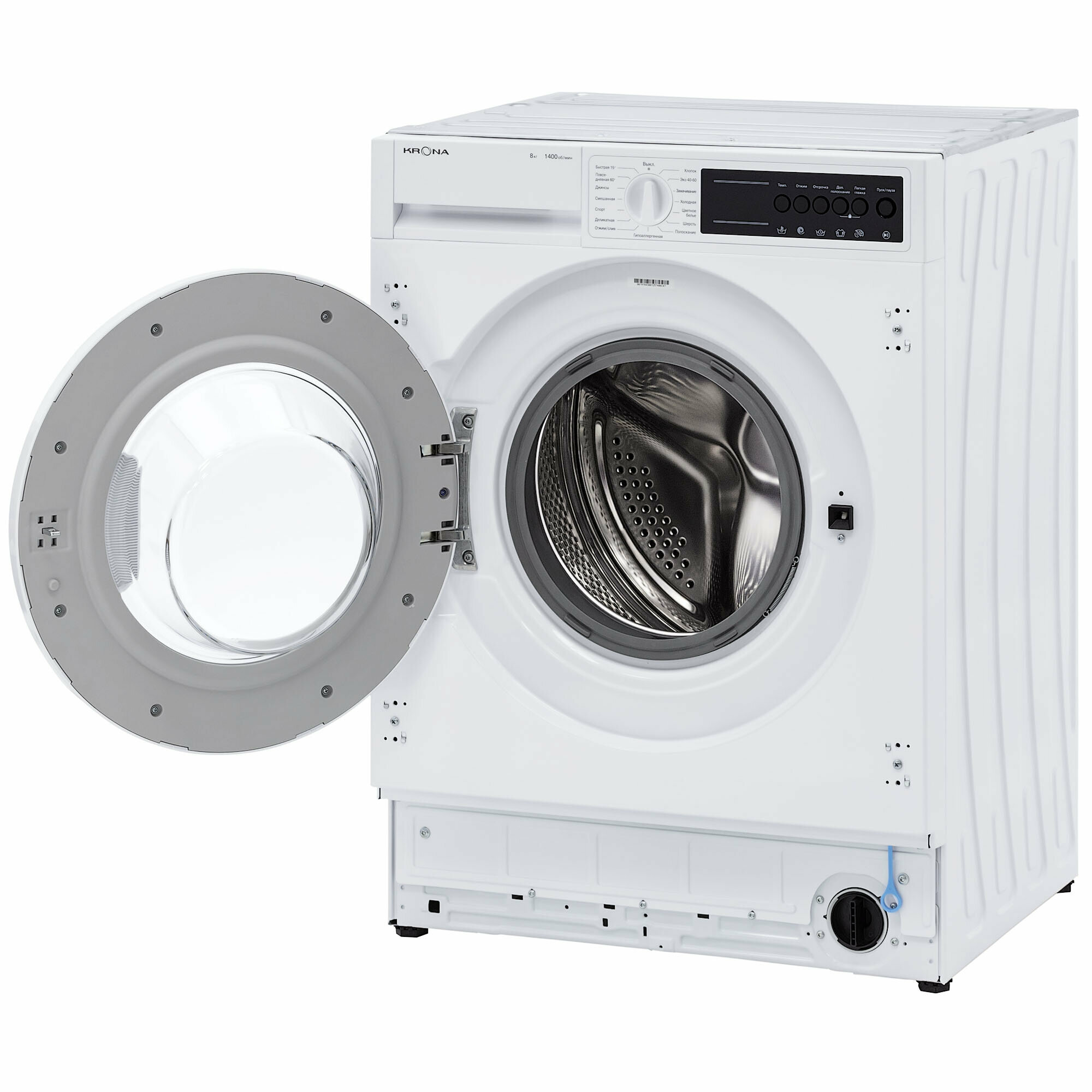 В комплект со стиральный машиной входит : петли для крепления фасада, магнитные демпферы, заливной шланг, заглушки для отверстий под транспортировочные болты, разделитель отсека, монтажные элементы