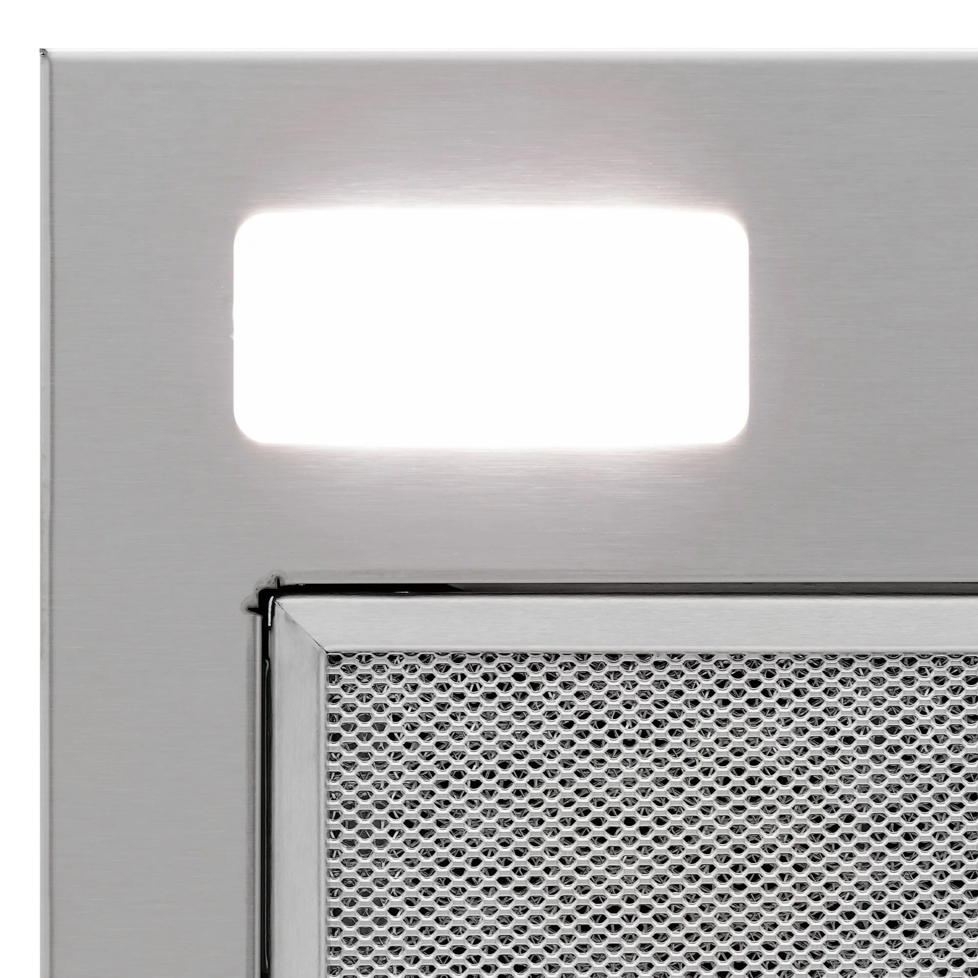 Компактный размер. Сниженная высота встраивания над варочной поверхностью. Компактная и простая схема встраивания в навесной шкаф. Удобное расположение выходного отверстия. Энергосберегающее LED-освещение. Оптимальная производительность