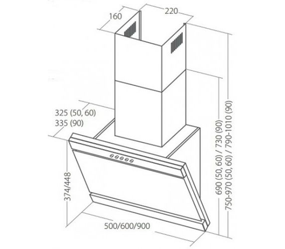 Размеры прибора (ВхШхГ) : 750/970х600х325 мм.