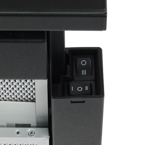 Управлять функциями вытяжки можно при помощи удобных кнопок, которые скрыты в торцах боковых панелей устройства.
