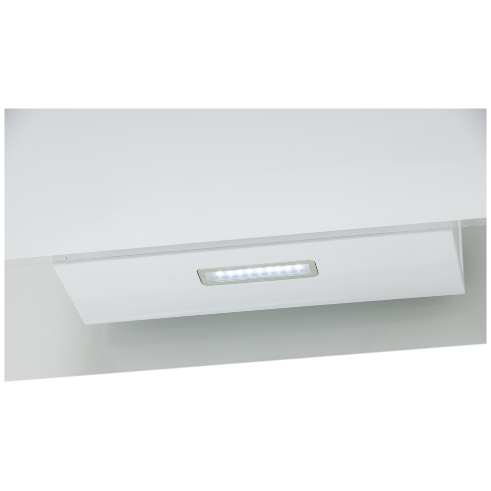 Наклонная вытяжка стильно и современно смотрится в любом интерьере, благодаря фасаду, выполненному из закаленного стекла в белом цвете и стильному дизайну.