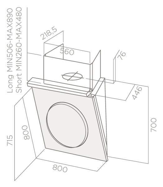 Особенности: Эти вытяжки могут быть оборудованы системой удаленного двигателя. По отношению к той же модели с внутренним двигателем, наружный двигатель улучшает на 35% эксплуатационные качества вытяжной системы и сокращает на 20% уровень воспринимаемого шума.