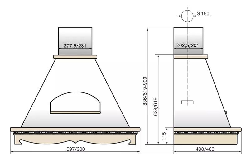 Габариты (ВхШхГ) 619-900х900х466 мм