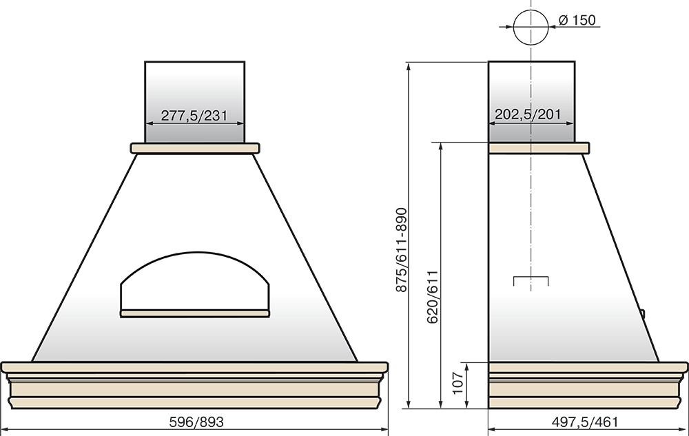 Ширина вытяжки: 90cm