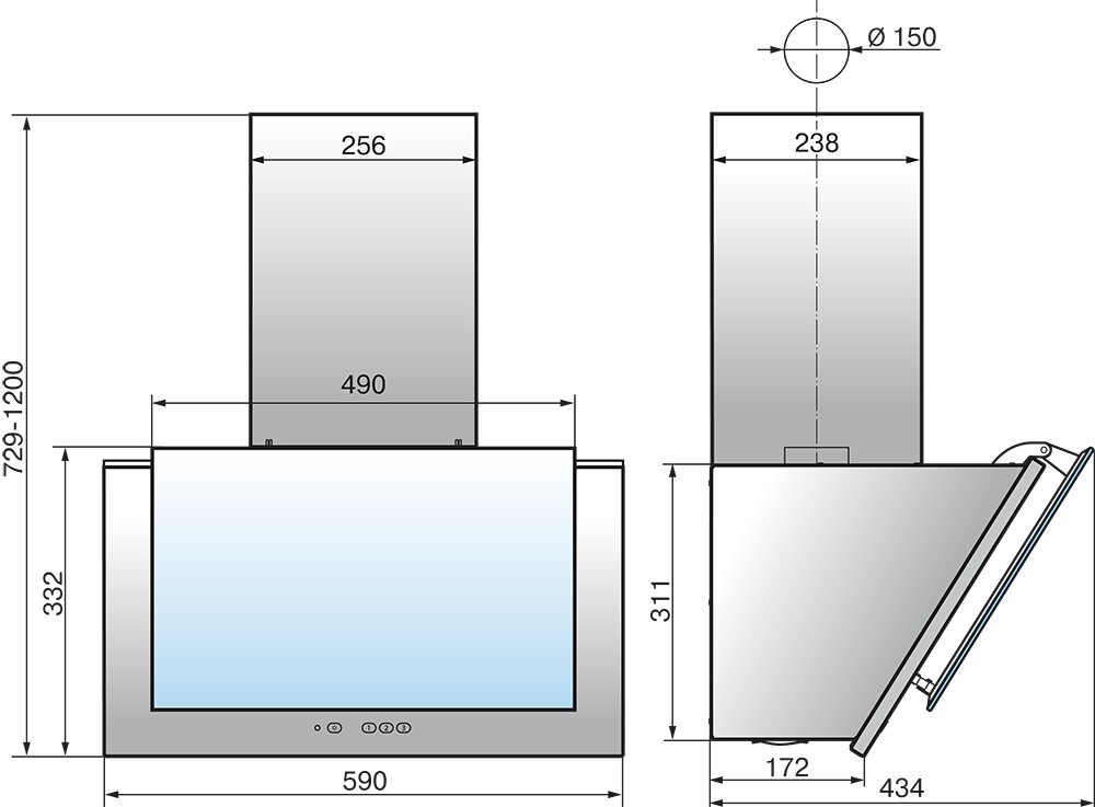 | | Функции и возможности | | Освещение | светодиодные лампы | | Управление | кнопочные переключатели | | Таймер выключения |  | | Щелевое всасывание |  |  |  | | Общее | | Диаметр воздуховода | 150 мм | | Высота (мин.) | 73 см | | Высота (макс.) | 120 см | | Ширина | 60 см |