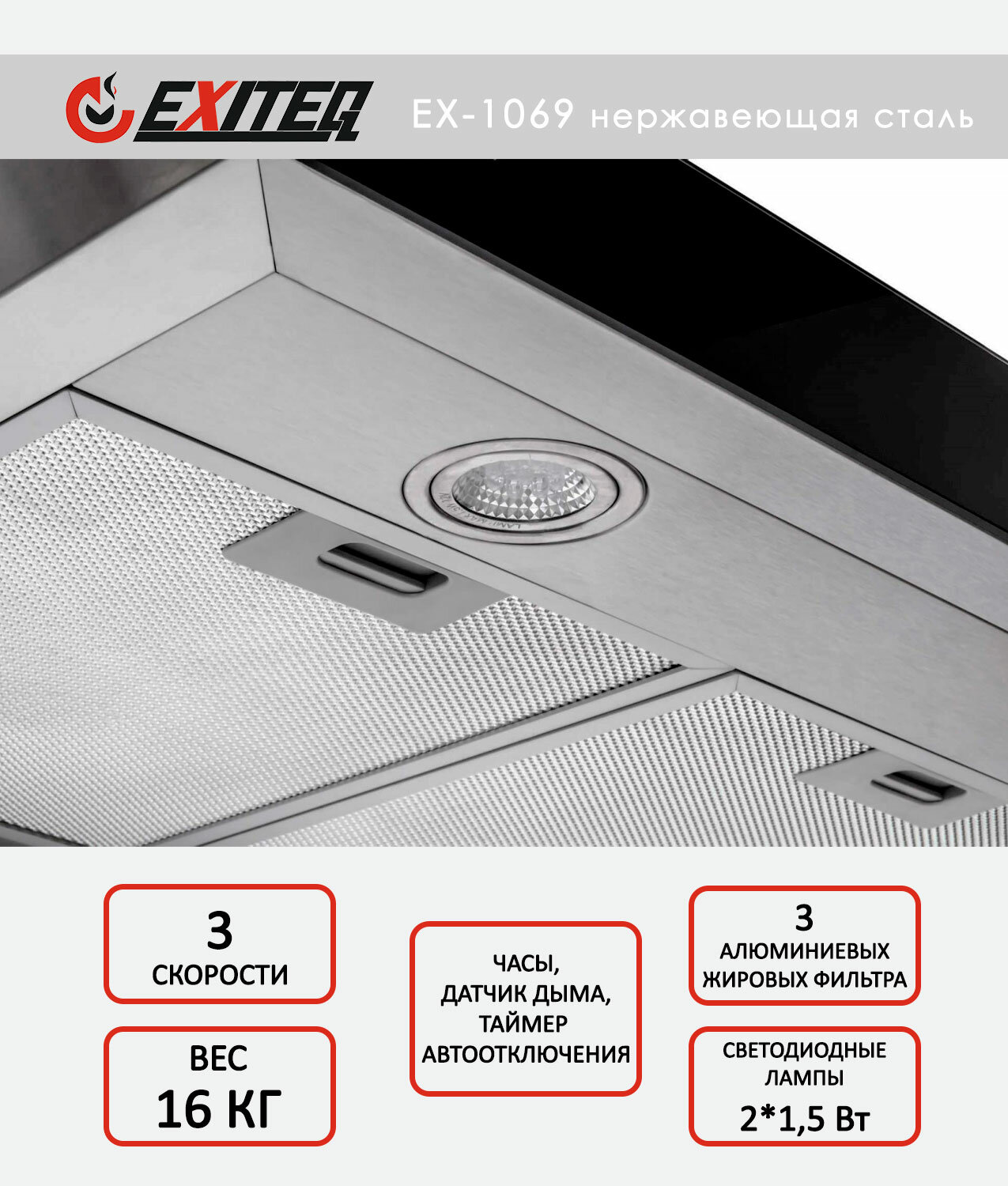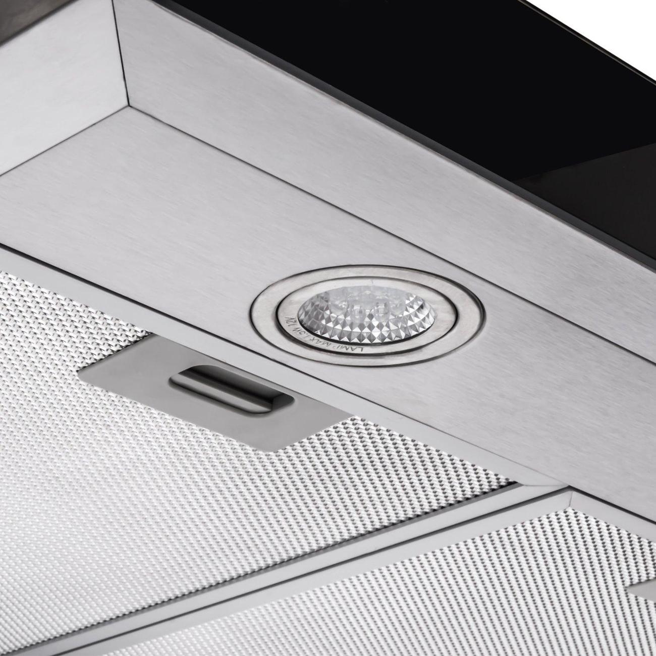 Комплект угольных фильтров E4CF01 из 2 шт. (докупается отдельно) улавливает до 95% запахов; Режим AutoCerebral: датчики дыма, пара и температуры; Индикатор загрязнения жирового фильтра; Автоматические включение и отключение