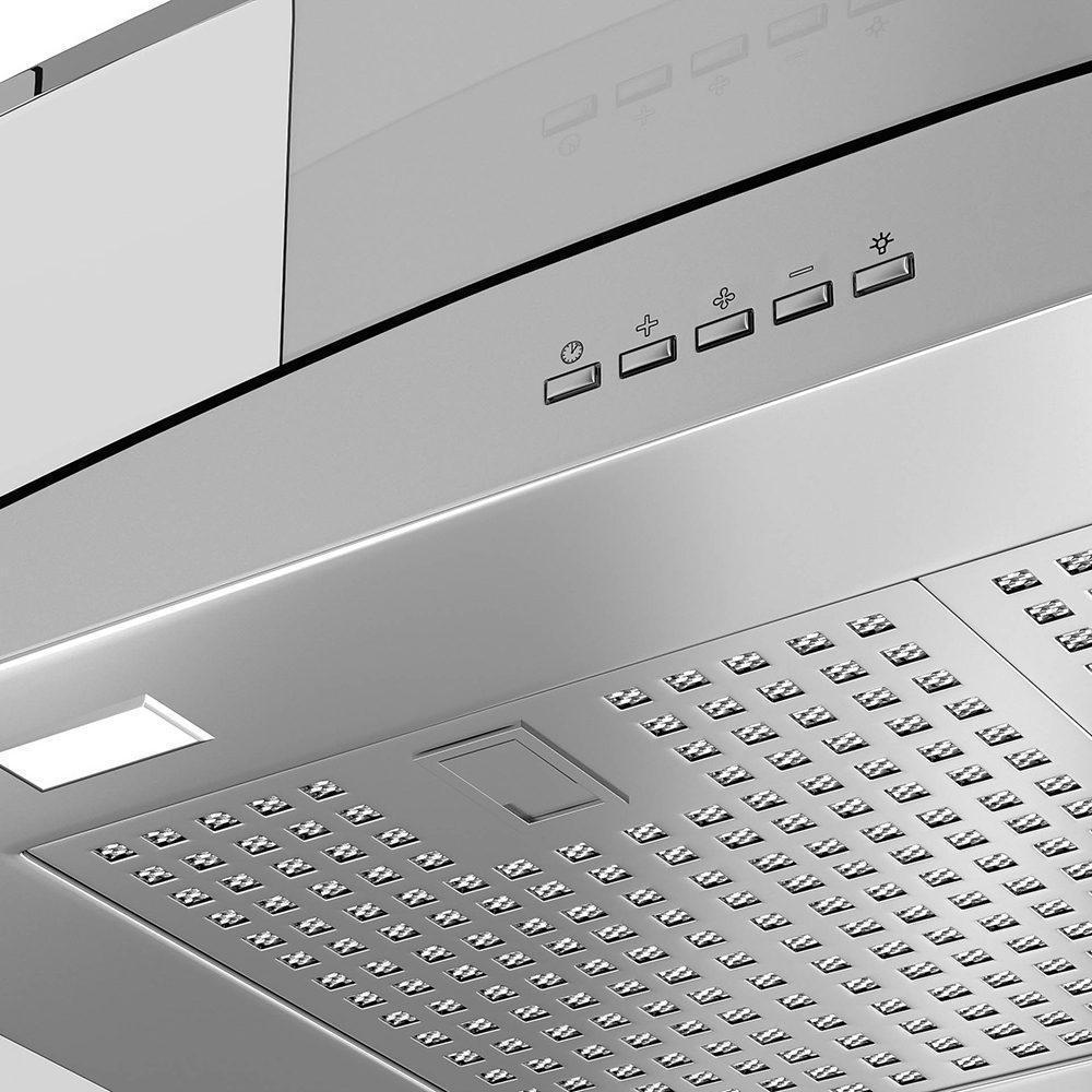 Островная вытяжка Falmec Design ASTRA isola 60 inox vetro (800) производится из нержавеющей стали марки AISI 304. Модель декорирована изогнутой пластиной из прозрачного закаленного стекла. Кнопки электронного управления расположены на передней панели.