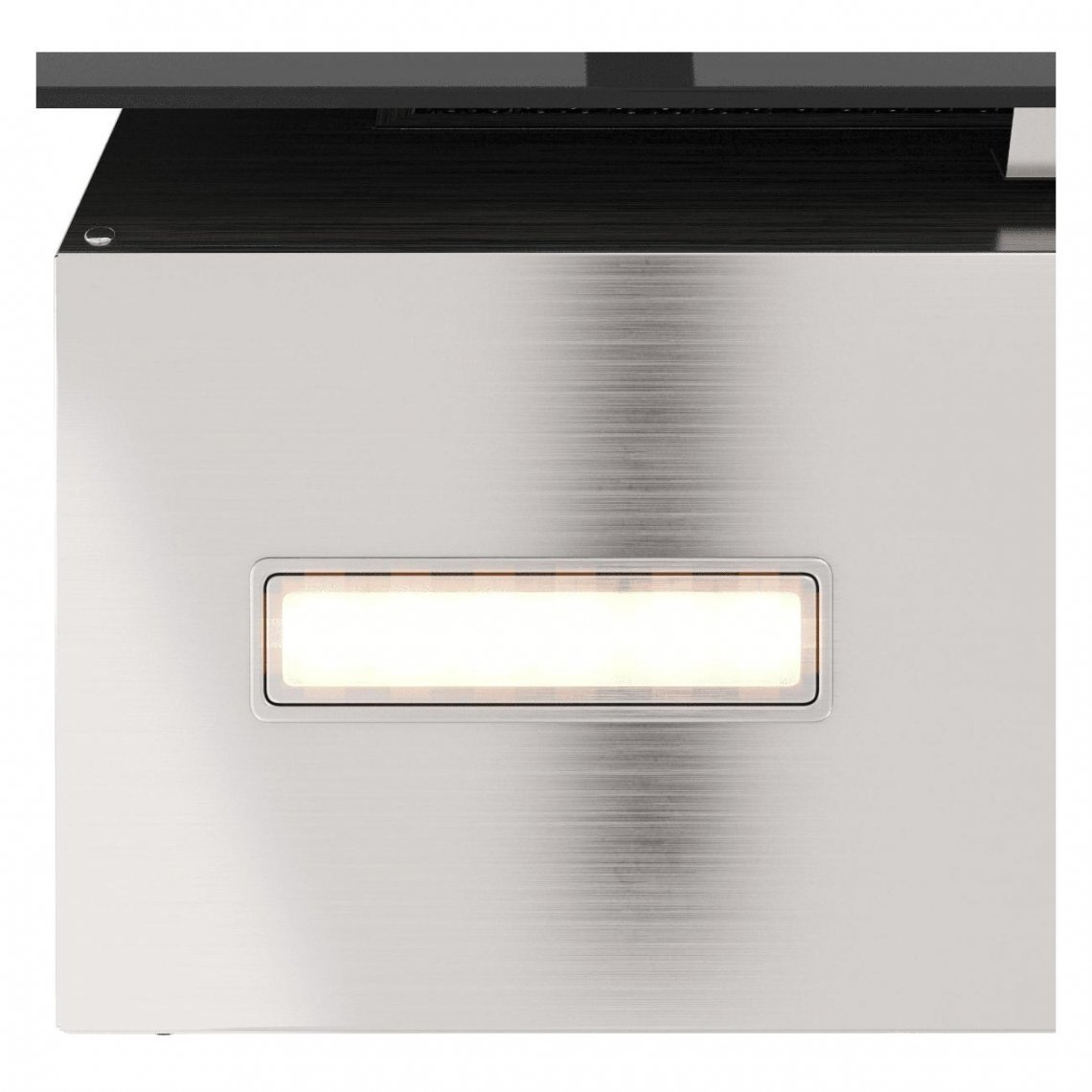 Периметральный захват воздуха снижает уровень шума. Сенсорное управление на стекле: лаконично и удобно. 1000 м3/ч: идеальная чистота для кухни 40 м2. Таймер отключения вытяжки через 5 минут. Доводчик: удобное открытие для замены фильтров.