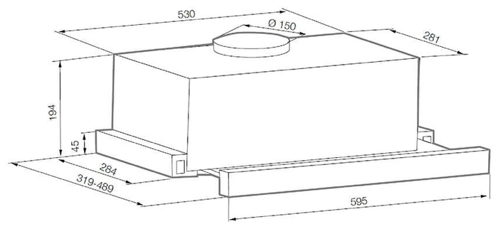 | Тип и монтаж | встраиваемая (в шкаф) | | Оформление | с выдвижной панелью |  |  | | Технические параметры | | Принцип работы | отвод / рециркуляция | | Производительность (мотор) | 550 м³/ч | | Минимальный уровень шума | 61 дБ | | Максимальный уровень шума | 64 дБ | | Количество скоростей | 3 | | Количество двигателей | 1 |