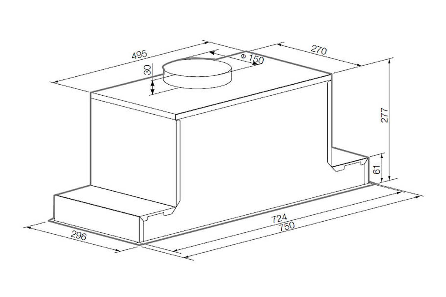 | | Фильтрация | | Жироулавливающий фильтр | алюминиевый | | Возможность установки активного фильтра |  |  |  | | Функции и возможности | | Освещение | светодиодные лампы | | Управление | сенсорное | | Периметральное всасывание |  |  |  | | Общее | | Высота (макс.) | 28 см | | Ширина | 75 см | | Глубина | 30 см |