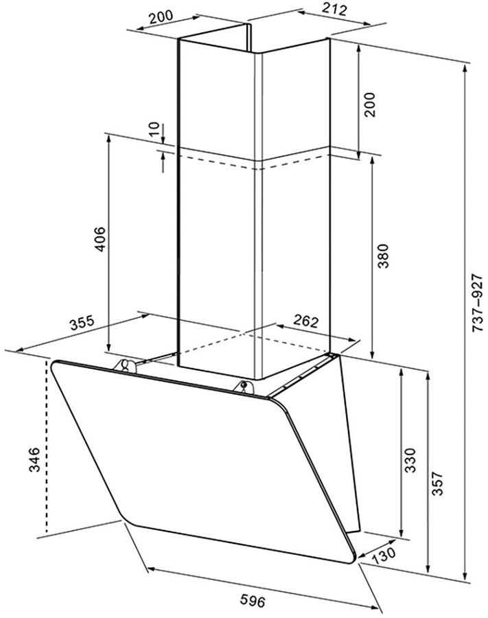 Ширина вытяжки 59.6 см