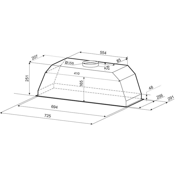 Ширина вытяжки 725 мм