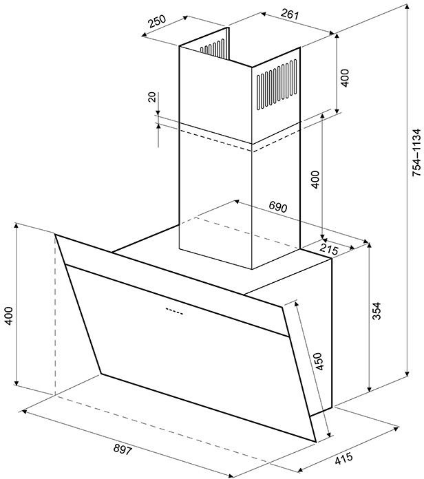 Высота вытяжки (мин / макс): 75.4x113.4см