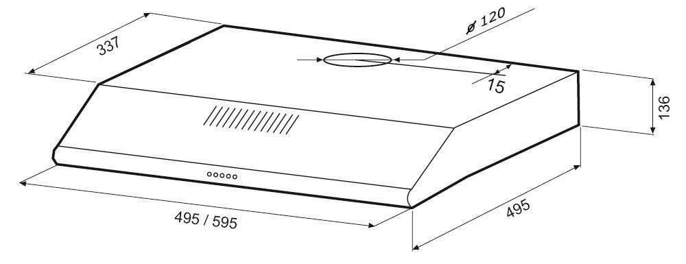 Фильтрация | Жироулавливающий фильтр | алюминиевый | Возможность установки активного фильтра |  | Модель угольного фильтра | TN |  |  | Функции и возможности | Освещение | лампы накаливания / 1x40 Вт / | Управление | кнопочные переключатели |  |  | Общее | Высота (макс.) | 13.6 см | Ширина | 59.5 см | Глубина | 49.5 см |
