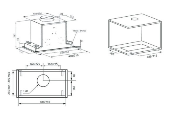 - Ширина вытяжки