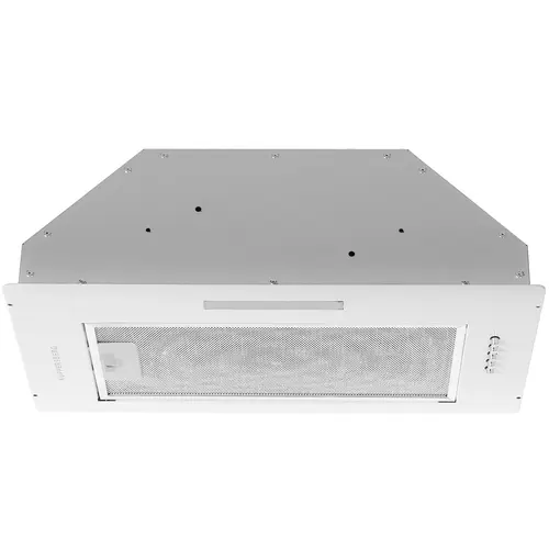 Вытяжка полновстраиваемая станет отличным помощником на вашей кухни. Лаконичный белый корпус оснащен простым кнопочным управлением для выбора трех скоростей. Жировой фильтр эффективно очищает воздух от частиц жира и копоти, отводя неприятные запахи на улицу через систему вентиляции.