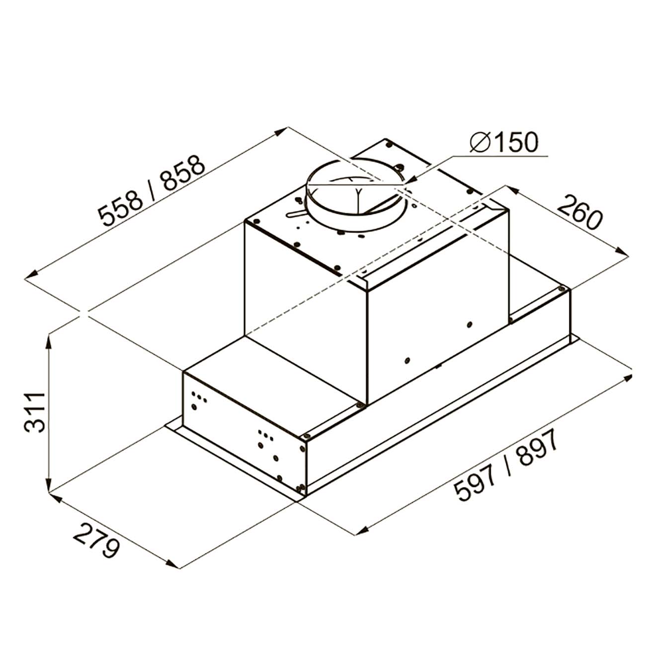 | | Функции и возможности | | Освещение | светодиодные лампы | | Управление | сенсорное | | Пульт ДУ |  | | Таймер выключения |  | | Периметральное всасывание |  |  |  | | Общее | | Дисплей |  | | Класс энергопотребления | B | | Диаметр воздуховода | 150 мм | | Высота (макс.) | 31.1 см | | Ширина | 59.7 см | | Глубина | 27.9 см | | Страна производства | Польшам |