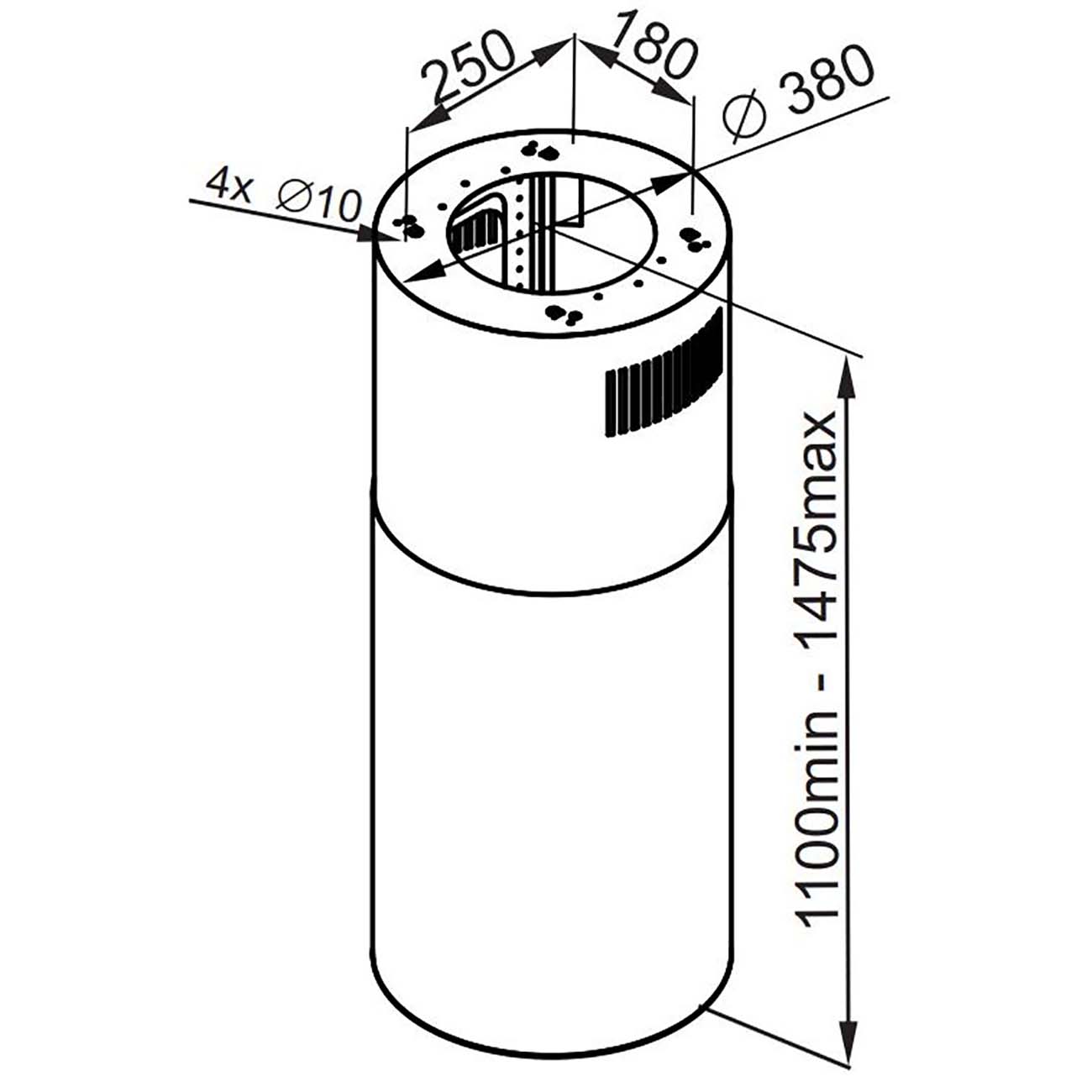 | | Функции и возможности | | Освещение | светодиодные лампы / 4x2.2 Вт / | | Управление | сенсорное | | Таймер выключения |  | | Периметральное всасывание |  |  |  | | Общее | | Диаметр воздуховода | 150 мм | | Высота (мин.) | 110 см | | Высота (макс.) | 147.5 см | | Ширина | 38 см | | Глубина | 38 см | | Страна производства | Польша |