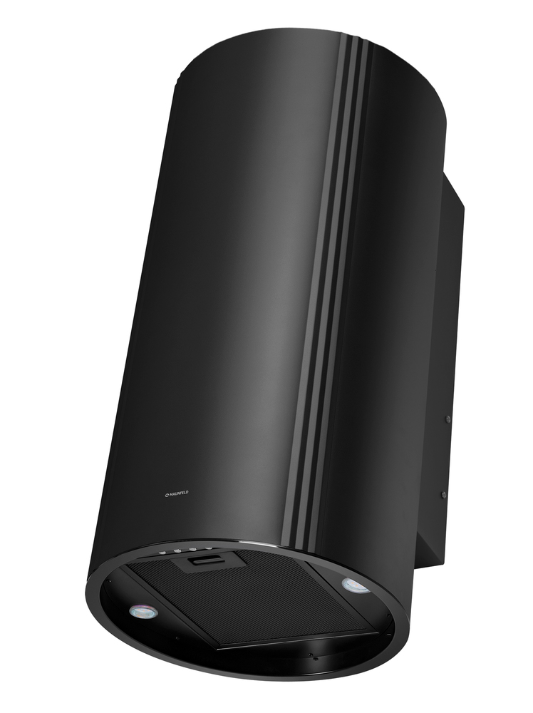 Корпус цилиндрической формы, выполненный из нержавеющей стали с термостойким покрытием, крепится к стене над поверхностью плиты. В нижней части вытяжки находится алюминиевый многослойный жироулавливающий фильтр. Он легко вынимается и полностью разбирается, что сильно упрощает чистку.