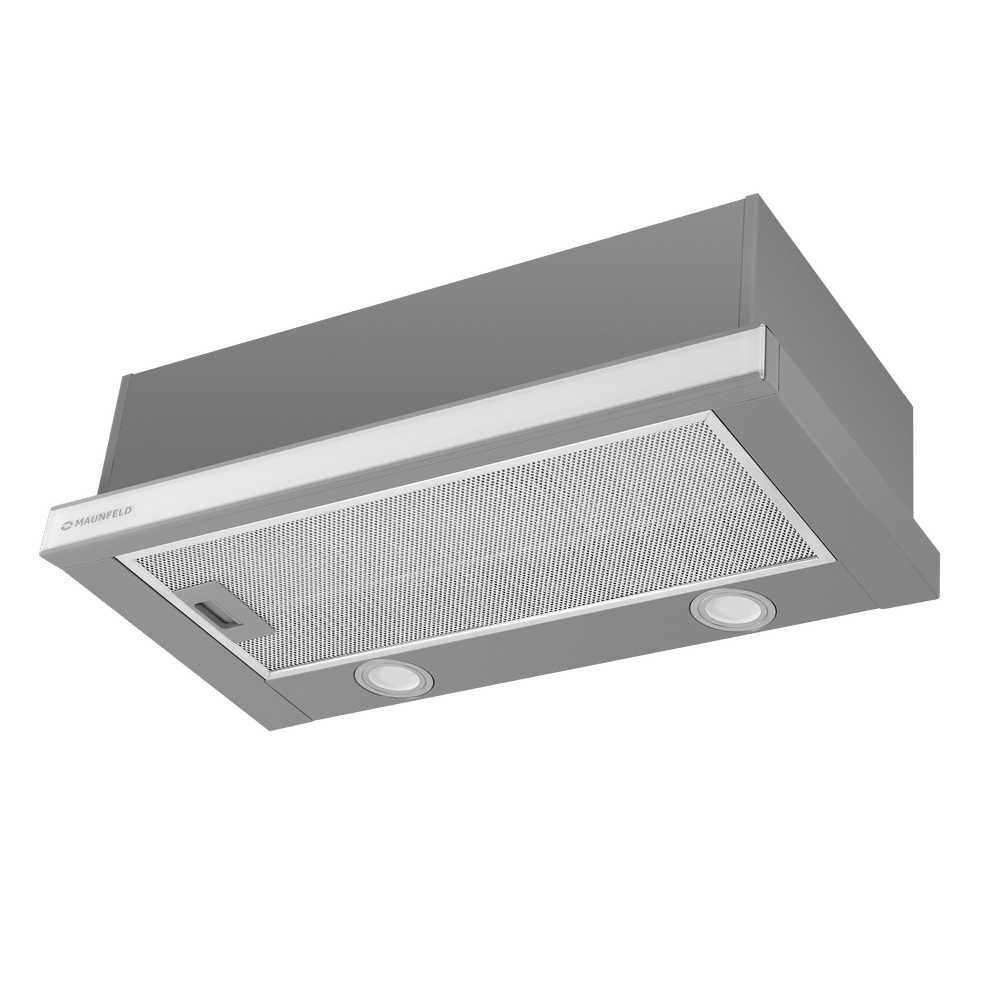 Эту телескопическую вытяжку можно встроить в кухонный шкаф, чтобы она не занимала много места на кухне. Встраиваемая модель при достаточно компактных габаритах (ширина рабочей панели 60 см) показывает довольно высокую производительность – до 620 м3/час.