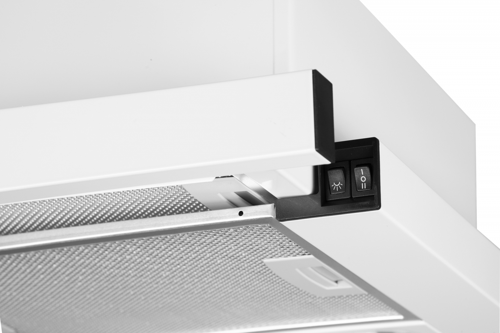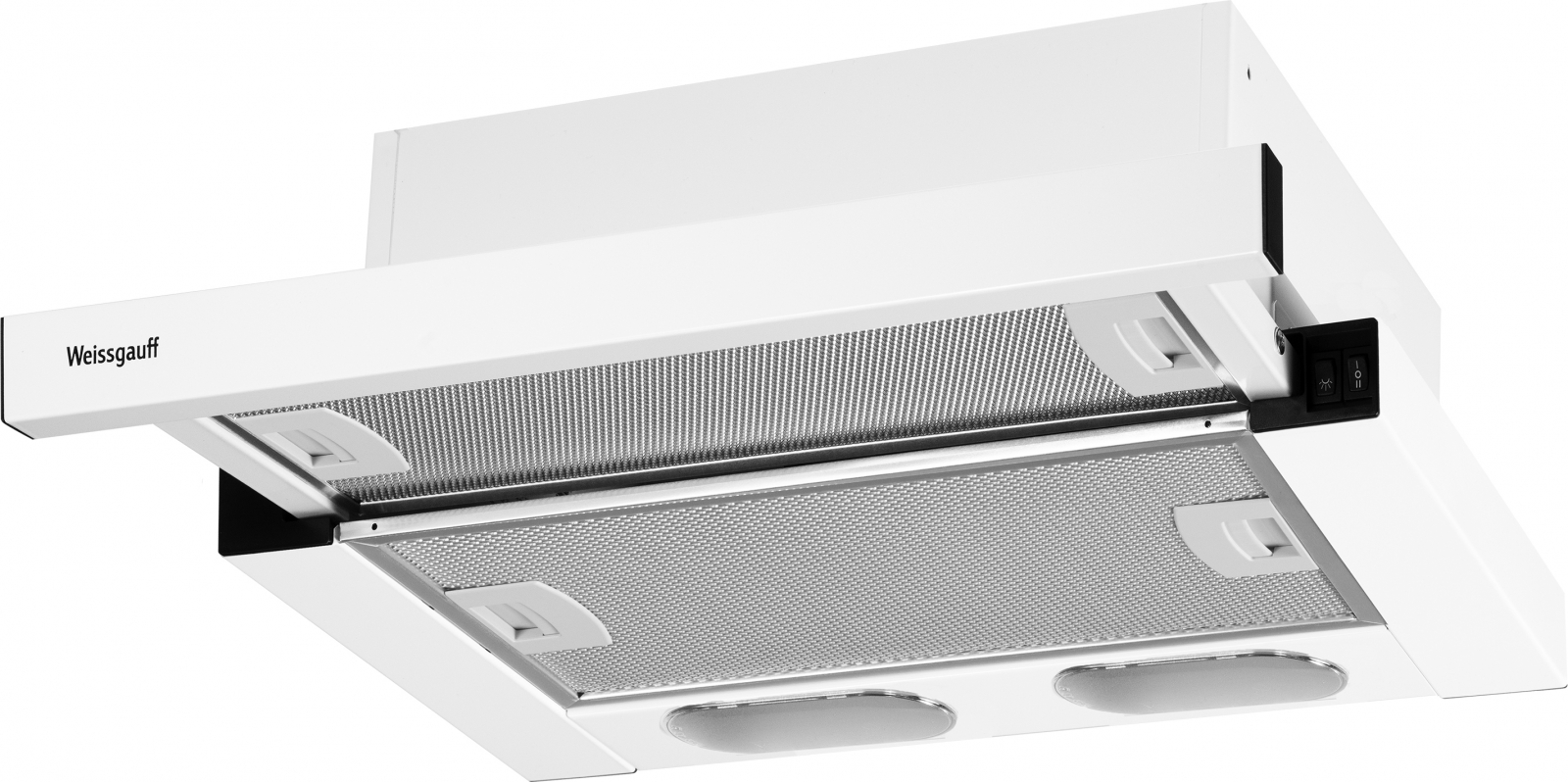 Встраиваемая в верхний подвесной шкаф телескопическая вытяжка от Weissgauff шириной 45 см, обладающая впечатляющей производительностью 600 м3/ч и низким уровнем шума 55 дБ, выполненная в белом цвете, не только порадует своей функциональностью, но и станет настоящим украшением вашей кухни!