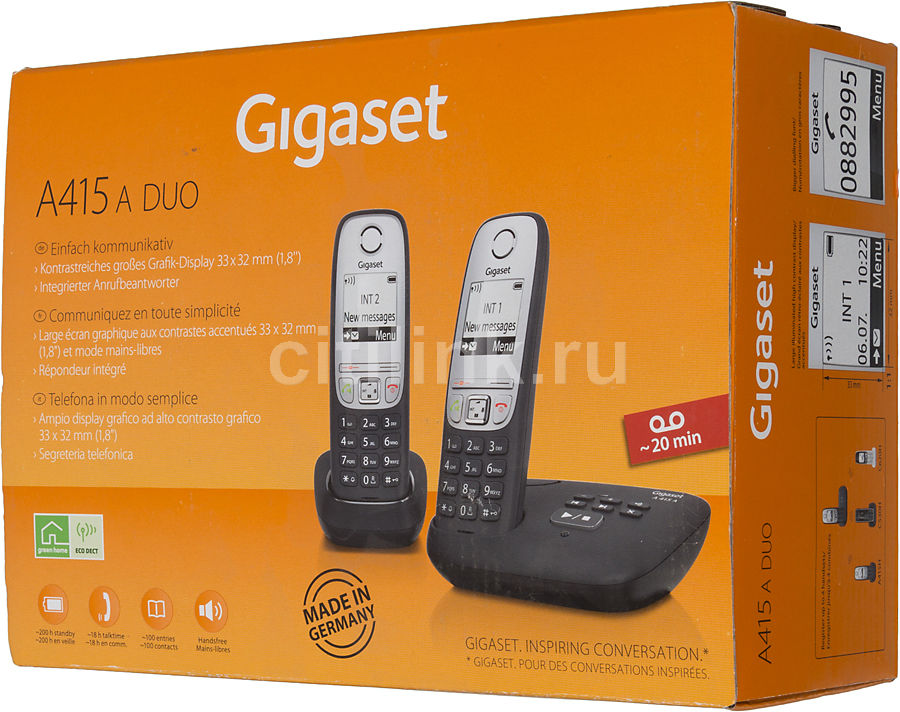однолинейный; автоответчик; АОН/Caller ID; подсветка клавиатуры; в комплекте 2 радиотрубки
