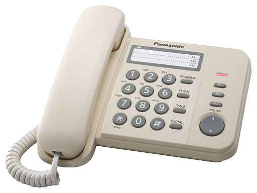 проводной телефон, однокнопочный набор 3 номеров, повторный набор номера, тональный набор, кнопка выключения микрофона, регулятор уровня громкости в трубке, регулятор громкости звонка