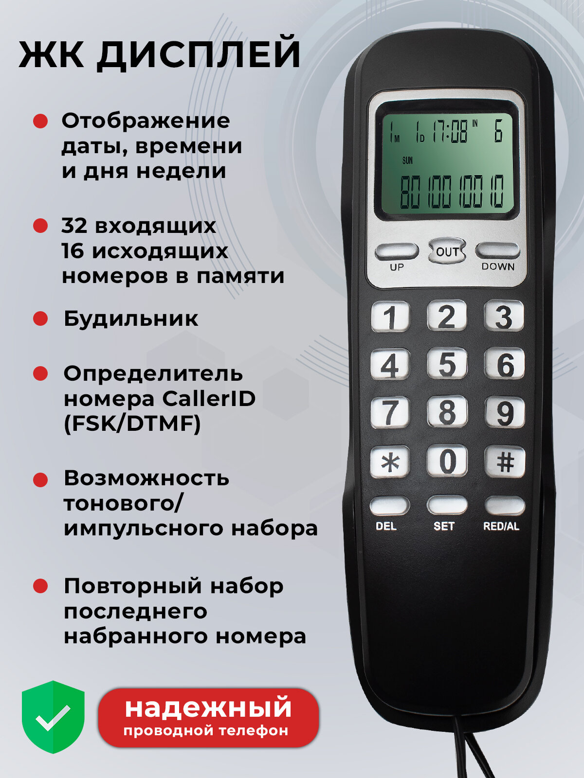 Качественный телефон с ЖК дисплеем и поддержкой функции Caller ID. Возможность питания от телефонной линии позволяет пользоваться телефоном без батареек.