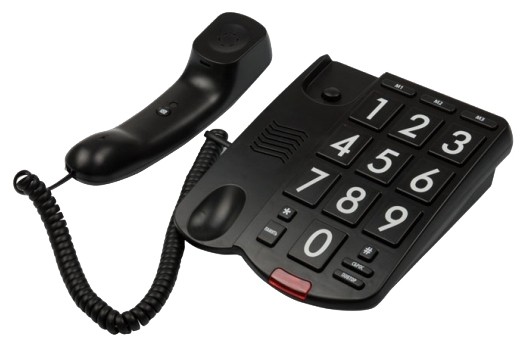 проводной телефон, повторный набор номера, регулятор громкости звонка, регулятор уровня громкости в трубке