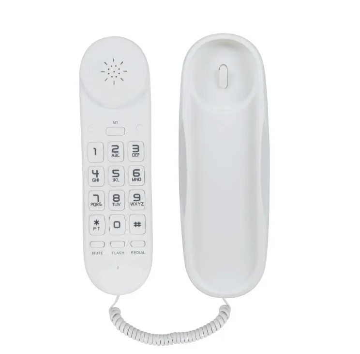 Компактный проводной аналоговый телефон, выполненный в прочном пластиковом корпусе белого цвета. Номеронабиратель и все органы управления располагаются на трубке. Яркий индикатор вызова на тыльной стороне трубки оповещает о входящем вызове. Прекрасно держится на стене, трубка хорошо крепится в ложементе. Не выпадает. В телефоне есть энергонезависимая память, которая сохраняет данные даже при отключении питания. Поддерживает тональный и импульсный набор. Регулируемая громкость мелодии вызова. Используется в основном, как гостиничный телефон или телефон в холле.