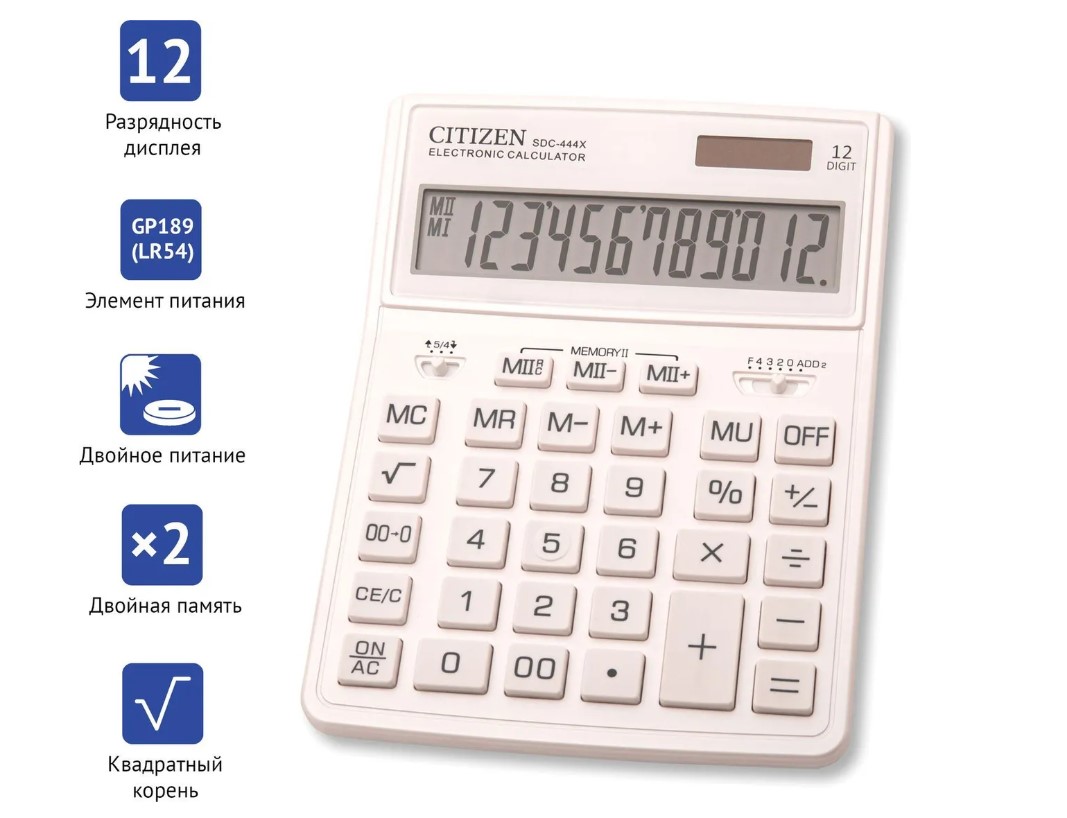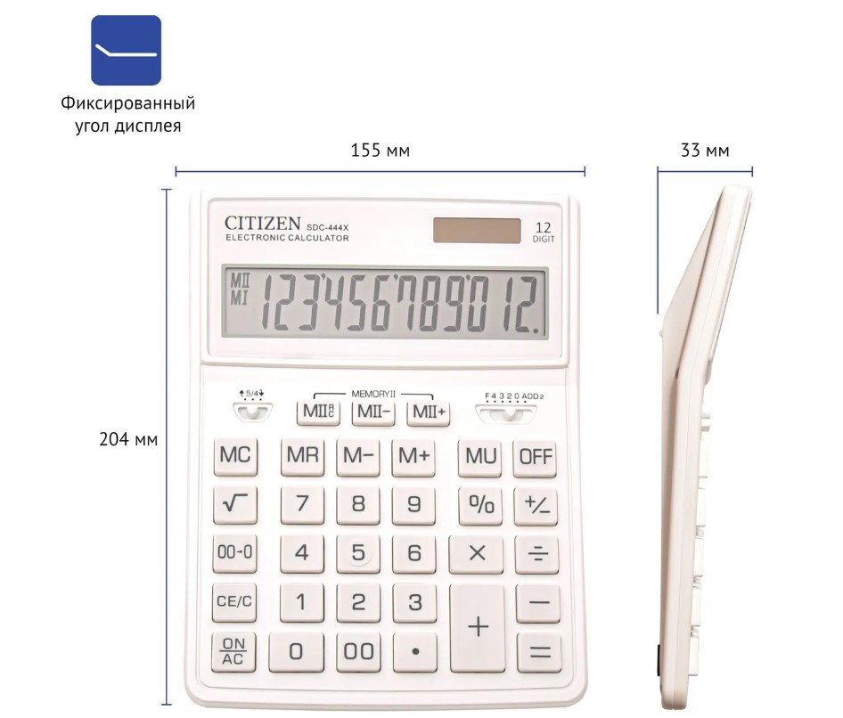 Оптимальный набор функций поможет автоматизировать расчеты: вычисление квадратного корня, коррекция последнего введенного значения, копка «00», двойная память, расчет наценки и кнопка выключения. Самая продаваемая модель в России по версии РБК в новом модном цвете! Выберите цвет, который подходит именно Вам.