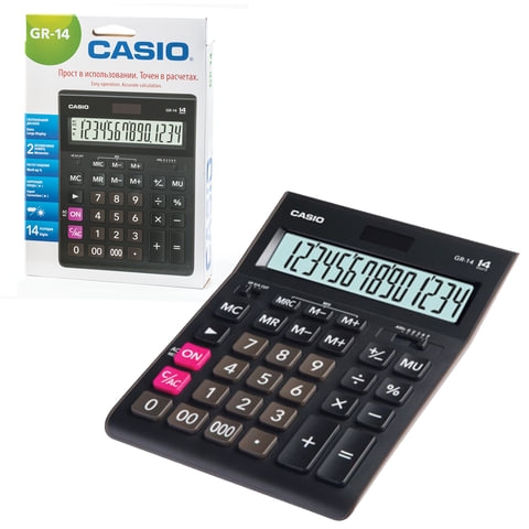 Настольный калькулятор в пластиковом корпусе черного цвета с большим ЖК-дисплеем. Производит все основные математические действия. Эргономичная клавиатура с цветовой дифференциацией позволяет быстро производить вычисления.