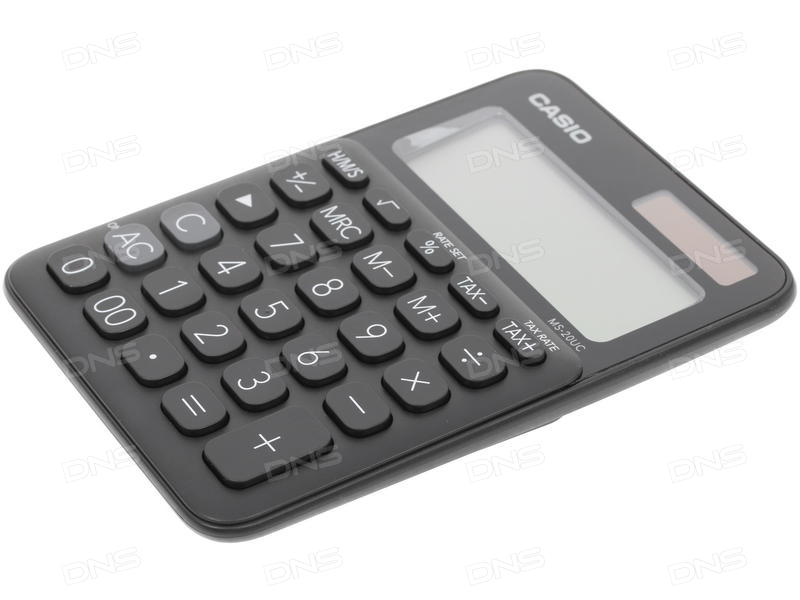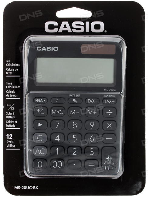 Особенности: вычисление квадратного корня, разделитель групп разрядов (по 3 цифры), клавиша для смены знака +/-, ввод одной клавишей двух нулей, клавиша возврата на одну позицию, функция вычисления маржи, %, подсчет времени, вычисление налогов, 3 кнопки памяти