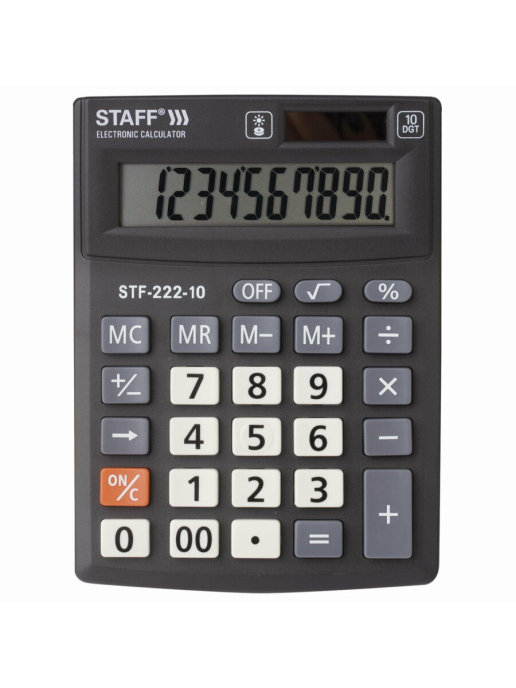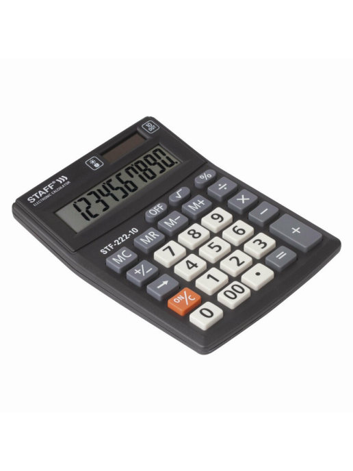Настольный калькулятор STAFF PLUS STF-222 выполняет все необходимые вычисления и не занимает много места на рабочем столе. Большой дисплей и эргономичный наклон корпуса позволяют работать с максимальным комфортом, несмотря на компактный размер.