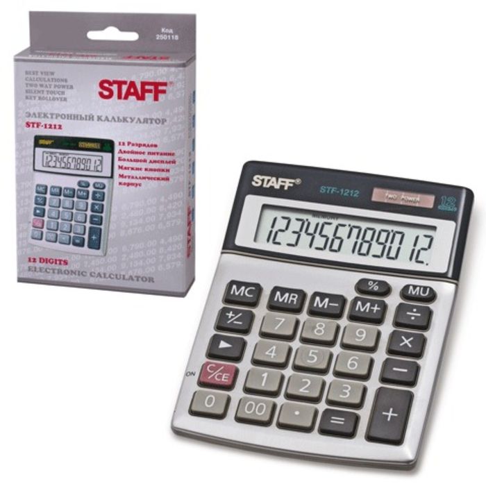 Компактный настольный калькулятор STAFF STF-1212 в прочном металлическом корпусе выполняет все необходимые вычисления и не занимает много места на рабочем столе. Большой дисплей и эргономичный наклон корпуса позволяют работать с максимальным комфортом.