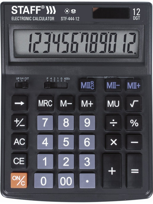 Простой в использовании и точный в расчётах настольный калькулятор STAFF STF-444-12 выполняет все необходимые вычисления на работе и дома. Кнопки нажимаются легко и приятно, эргономичный наклон корпуса позволяет работать с максимальным комфортом.