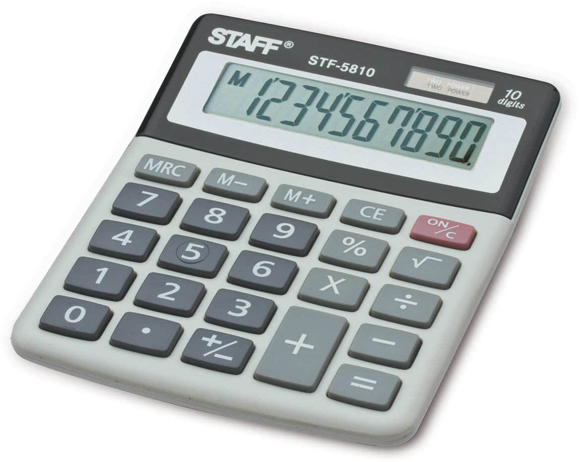 Настольный калькулятор STAFF STF-5810 выполняет все необходимые вычисления и не занимает много места на рабочем столе. Большой дисплей и эргономичный наклон корпуса позволяют работать с максимальным комфортом, несмотря на компактный размер.