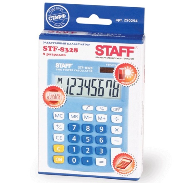 Компактный настольный калькулятор STAFF STF-8328 выполняет все необходимые вычисления и не занимает много места на рабочем столе. Большой дисплей и эргономичный наклон корпуса позволяют работать с максимальным комфортом.