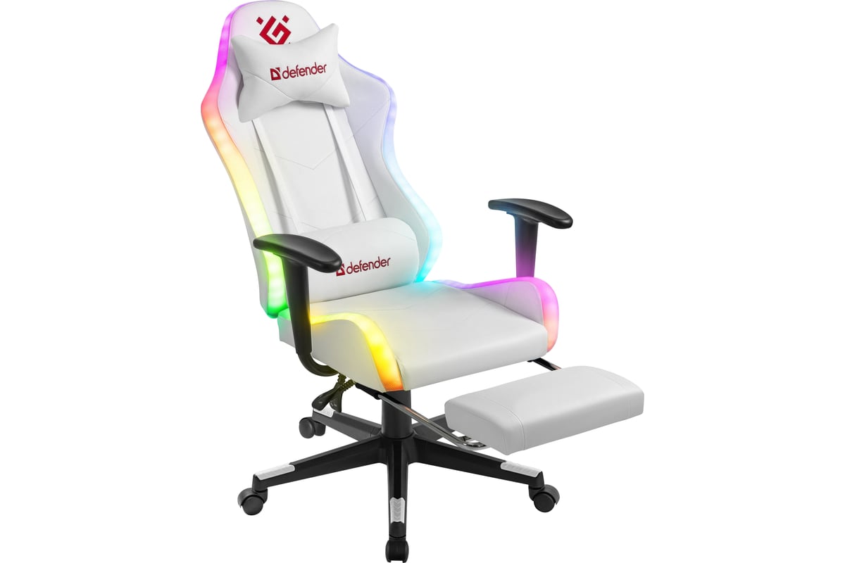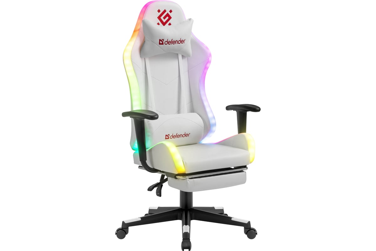 Игровое кресло DEFENDER Watcher белый, подсветка, полиуретан 64336 предназначено для дома или офиса.