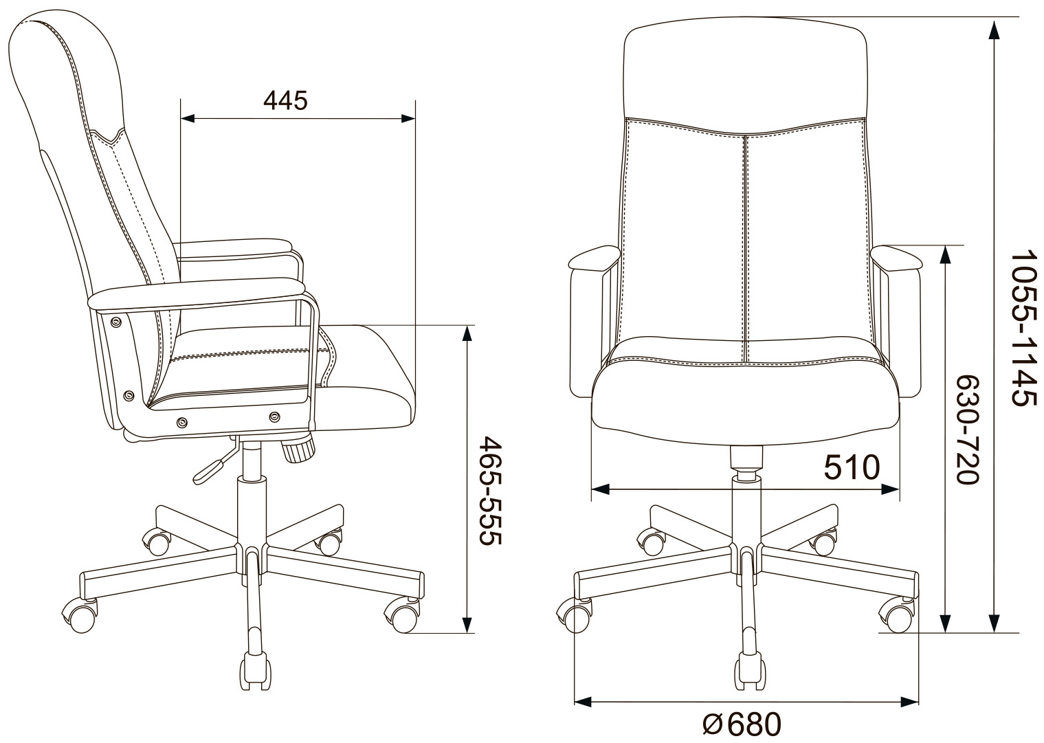 Высота с подлокотниками MIN