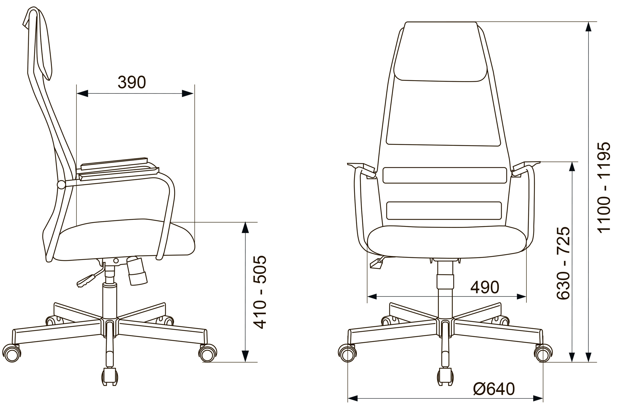 Высота с подлокотниками MIN