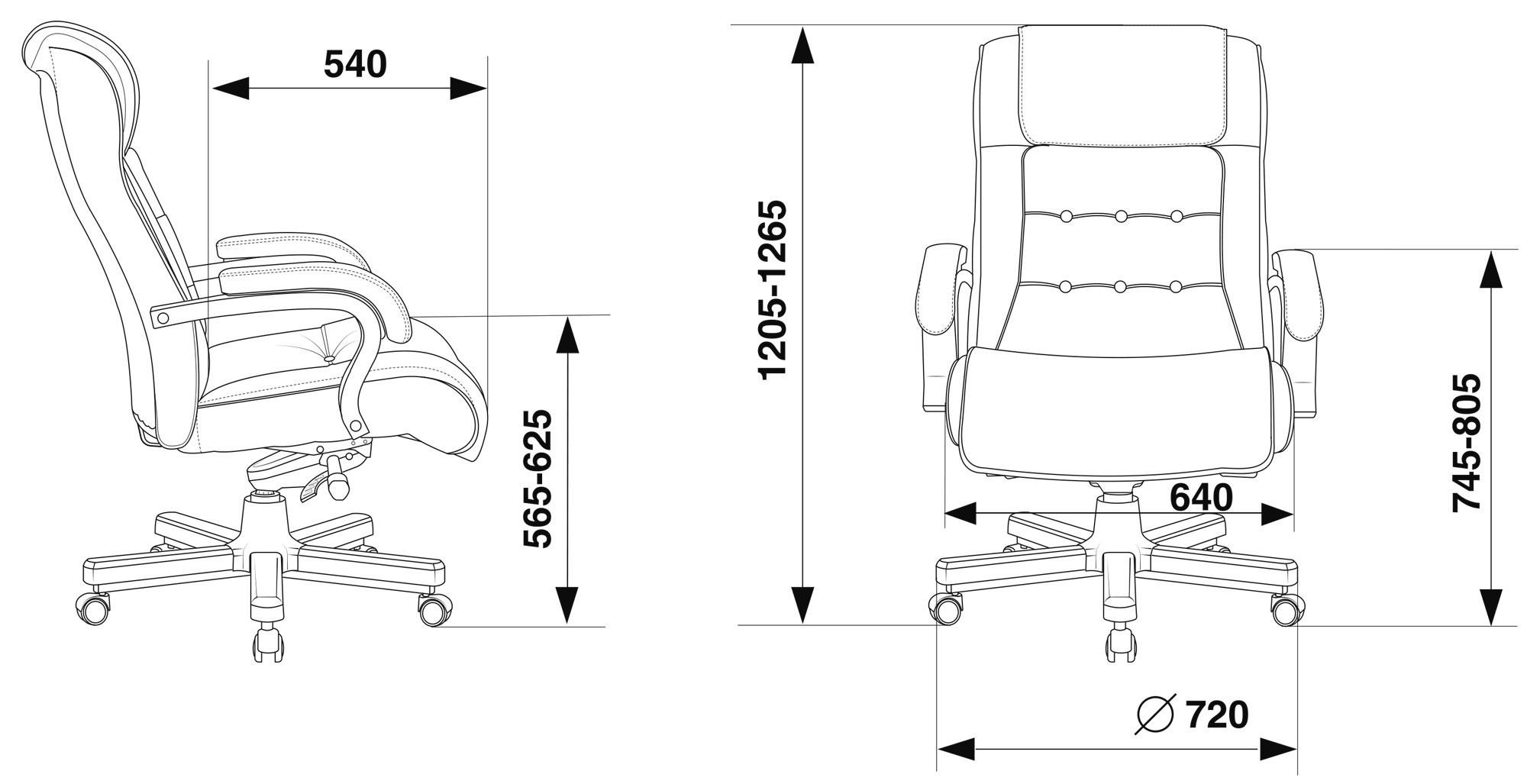 Высота с подлокотниками MIN