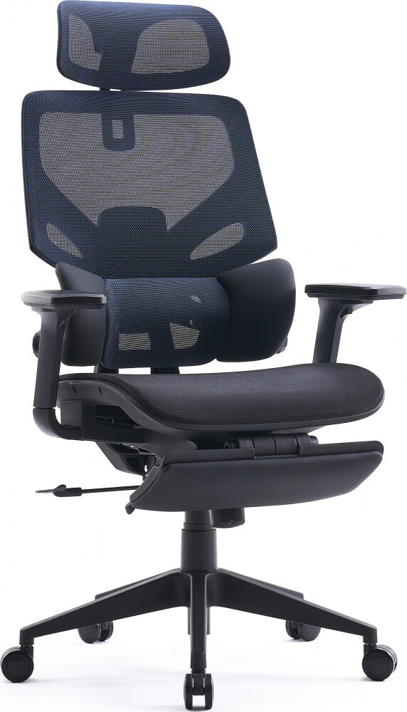 механизм качания, подставка для ног, поясничный упор, спинка из сетки
