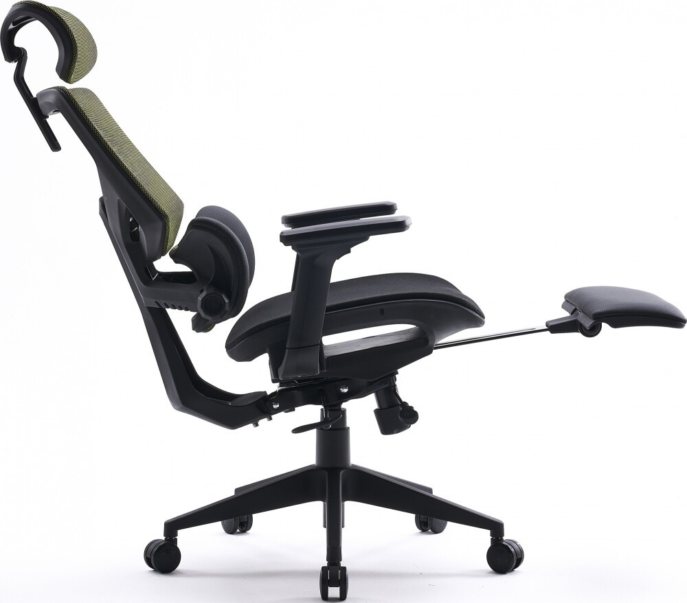 механизм качания, подставка для ног, поясничный упор, спинка из сетки