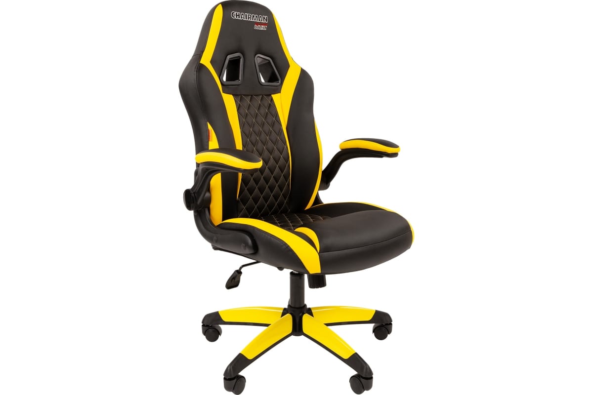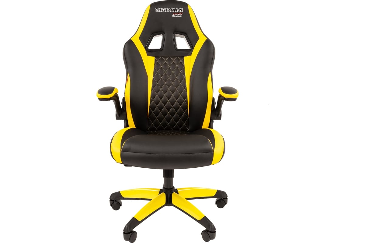 Игровое кресло CHAIRMAN game 15 экопремиум черный/желтый 00-07069668 предназначено для работы за компьютером.