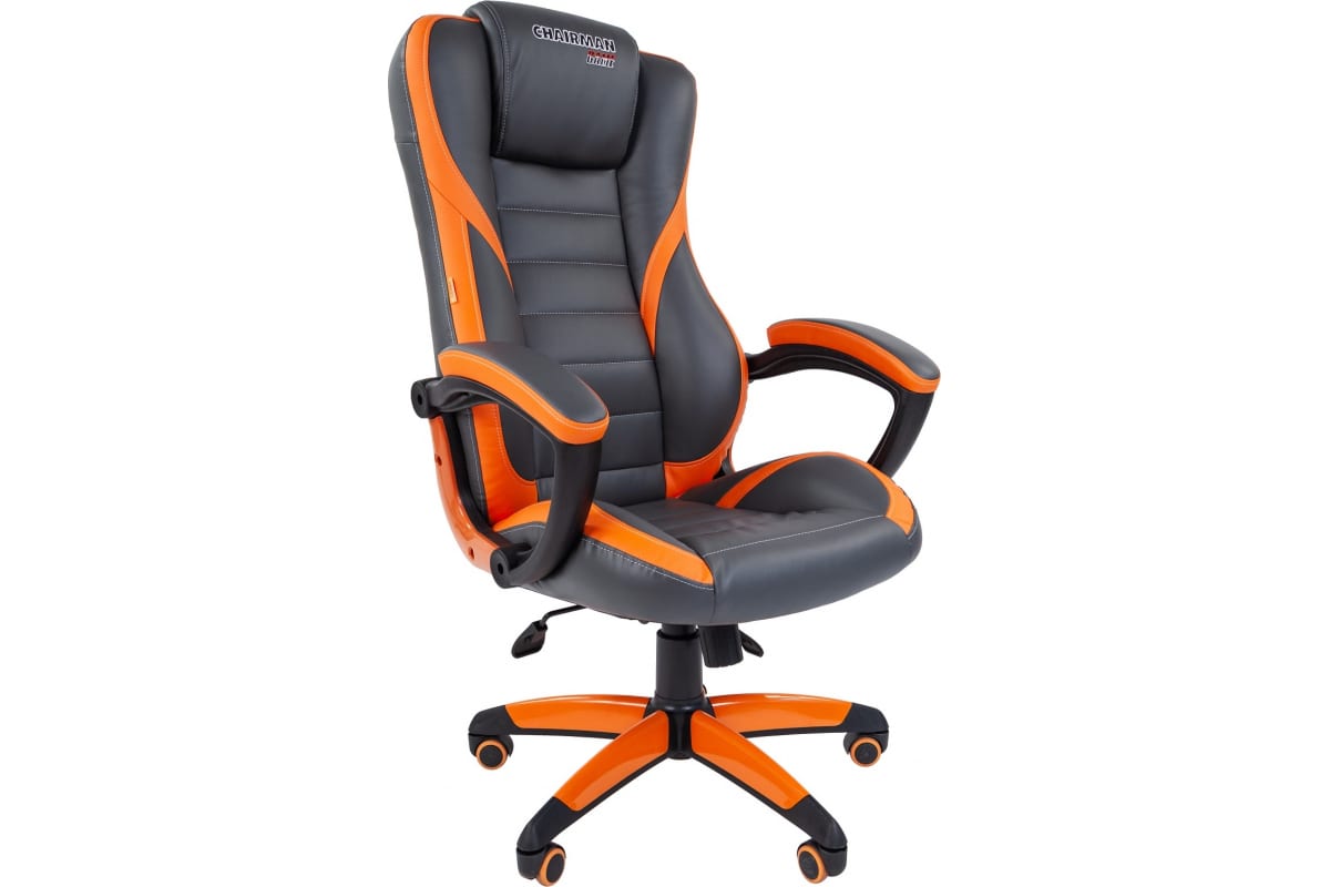 Игровое кресло CHAIRMAN game 22 экопремиум серый/оранжевый 00-07019435 предназначено для сидения за компьютером.