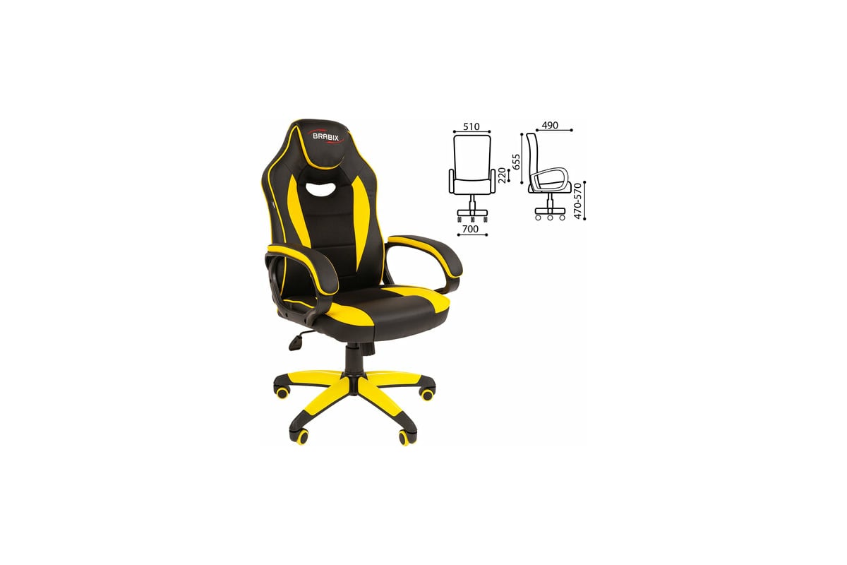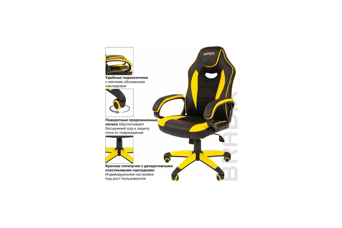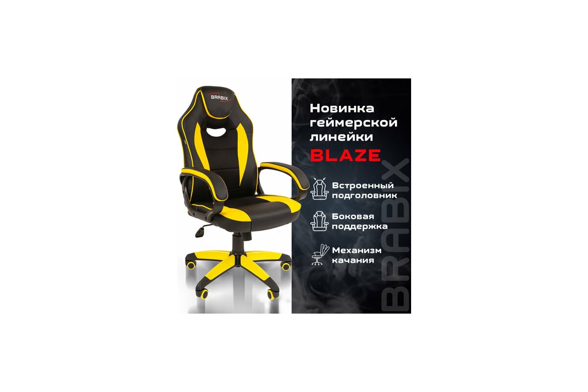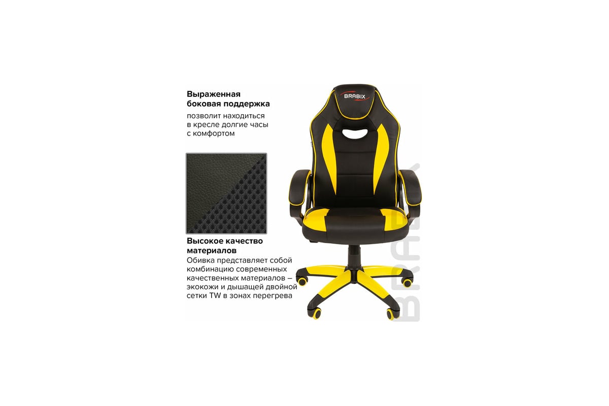 Компьютерное кресло BRABIX Blaze GM-162, TW/экокожа, черное/желтое 532579 предназначено для работы за компьютером.